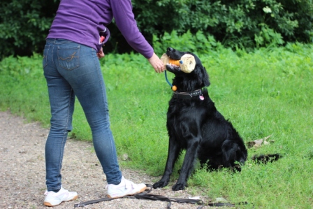 zeigen wir Ihnen in unseren Kursen das richtige Apportieren.